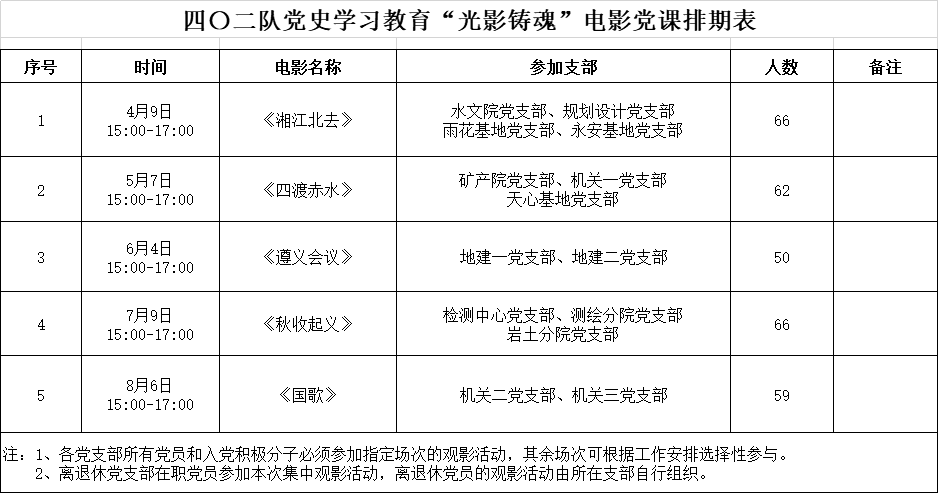 通知:本周五將開展“光影鑄魂”電影黨課活動,地點在11樓會議室,請各支部根據(jù)排期表組織好黨員按時參加。