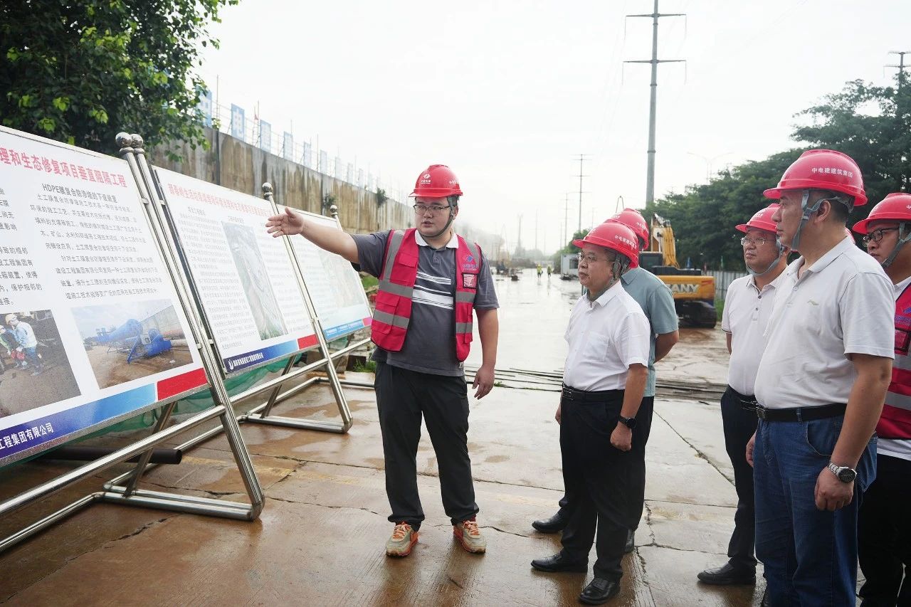 全鐵軍一行實地查看了項目建設(shè)情況,詳細了解了工程概況、建設(shè)進度、施工工藝等方面工作,對公司突破技術(shù)瓶頸,與國內(nèi)大型機械加工廠合作研發(fā)和制作的HDPE膜復(fù)合防滲墻的接頭箱裝置、下設(shè)裝置表示高度肯定和贊賞,并對當(dāng)前遇到的三大問題進行了現(xiàn)場會商解決。
