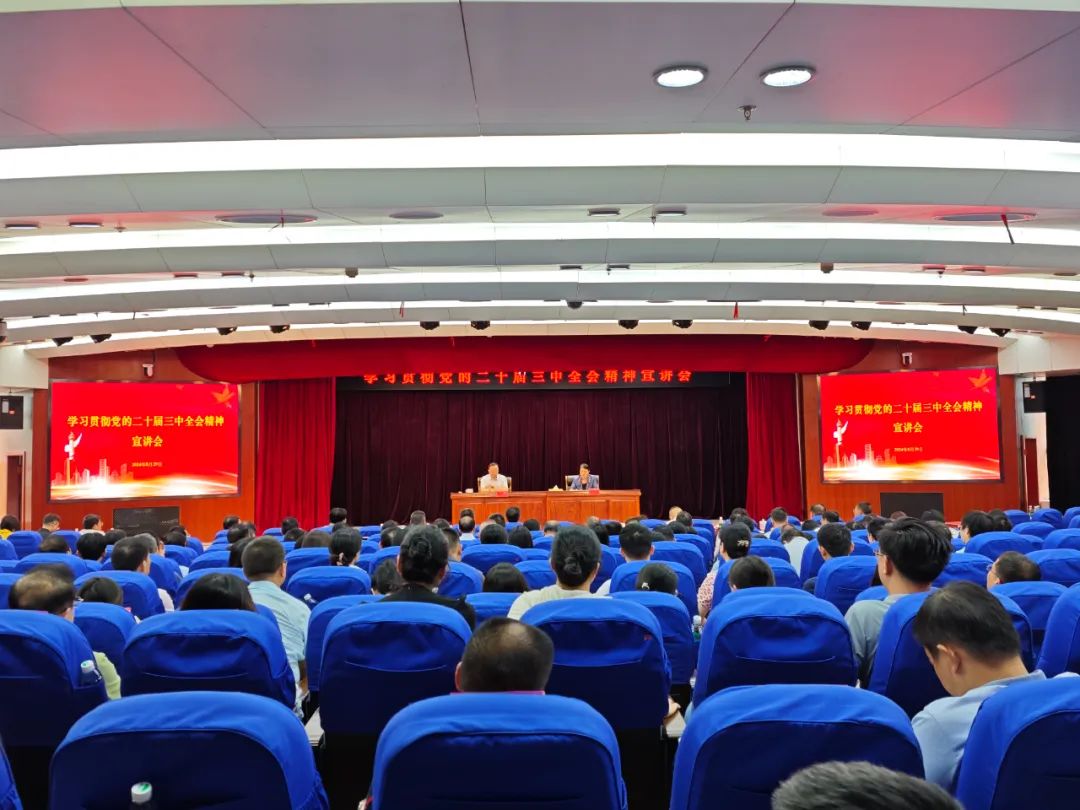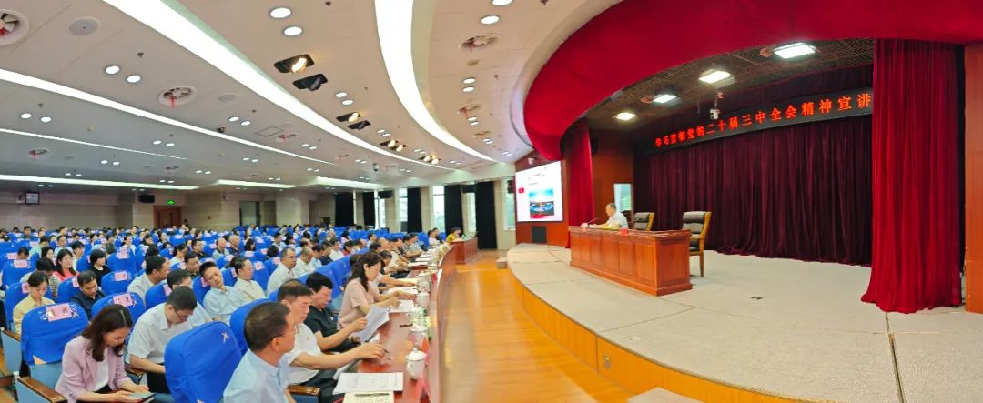 報告會上,談文勝緊緊圍繞學習貫徹習近平總書記在黨的二十屆三中全會上的重要講話和全會《決定》,從黨的二十屆三中全會是在以中國式現(xiàn)代化全面推進強國建設、民族復興偉業(yè)的關鍵時期召開的一次十分重要的會議,深入學習領會習近平總書記在全會上的重要講話精神,全面準確理解《決定》提出的進一步全面深化改革重大舉措,全力以赴抓好全會精神貫徹落實等四個方面,結合鮮活事實、生動案例和翔實數(shù)據(jù),對全會精神作了系統(tǒng)宣講和深入闡釋。他指出,要圍繞構建高水平社會主義市場經(jīng)濟體制、推動高質量發(fā)展、完善宏觀調控制度體系、堅持以人民為中心、推進美麗中國建設等方面,聚焦健全預算制度、稅收制度、完善中央與地方財政關系、完善金融機構定位和治理等關鍵環(huán)節(jié),以改革的辦法推動財政高質量發(fā)展,為湖南省經(jīng)濟社會發(fā)展提供堅實的財政保障。