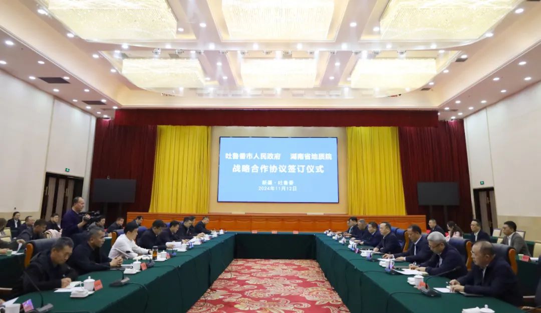 深化合作,共筑未來(lái)。11月12日,湖南省地質(zhì)院與吐魯番市人民政府舉行戰(zhàn)略合作協(xié)議簽訂儀式,共繪地質(zhì)合作新藍(lán)圖。湖南省地質(zhì)院黨委書記談文勝,吐魯番市委副書記、市長(zhǎng)克衣色爾·克尤木出席簽約儀式并講話。省地質(zhì)院黨委委員、副院長(zhǎng)劉擁軍和吐魯番市副市長(zhǎng)陳巖嶺代表雙方簽署戰(zhàn)略合作框架協(xié)議。