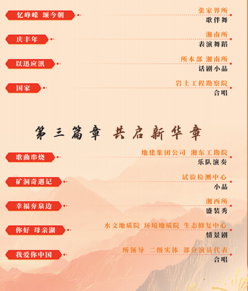 為弘揚地質(zhì)精神,展現(xiàn)全所職工的精神風貌和愛國情懷,進一步凝聚奮進力量,湖南省地質(zhì)災害調(diào)查監(jiān)測所定于2024年12月30日舉辦迎新年職工文藝展演活動。屆時將以視頻直播和照片直播方式進行,敬請期待。