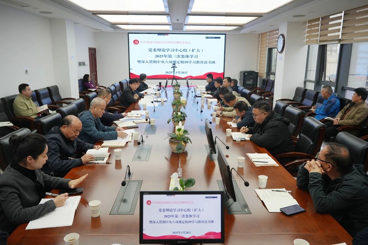 3月28日,湖南省地質(zhì)災(zāi)害調(diào)查監(jiān)測所開展黨委理論學(xué)習(xí)中心組(擴(kuò)大)2025年第三次集體學(xué)習(xí)暨深入貫徹中央八項(xiàng)規(guī)定精神學(xué)習(xí)教育讀書班,學(xué)習(xí)貫徹習(xí)近平總書記關(guān)于深入貫徹中央八項(xiàng)規(guī)定精神學(xué)習(xí)教育的重要講話和重要指示精神,黨委書記皇甫悅星主持會議并作總結(jié)發(fā)言。
